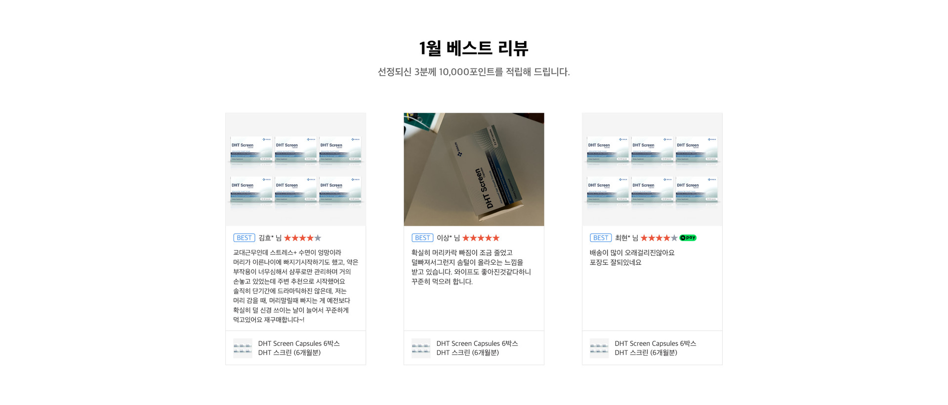 6개월동안 꾸준히 복용중입니다 조금씩 잔머리 늘어나는게 보여서 계속 복용 늘려보려구요 재구매합니다